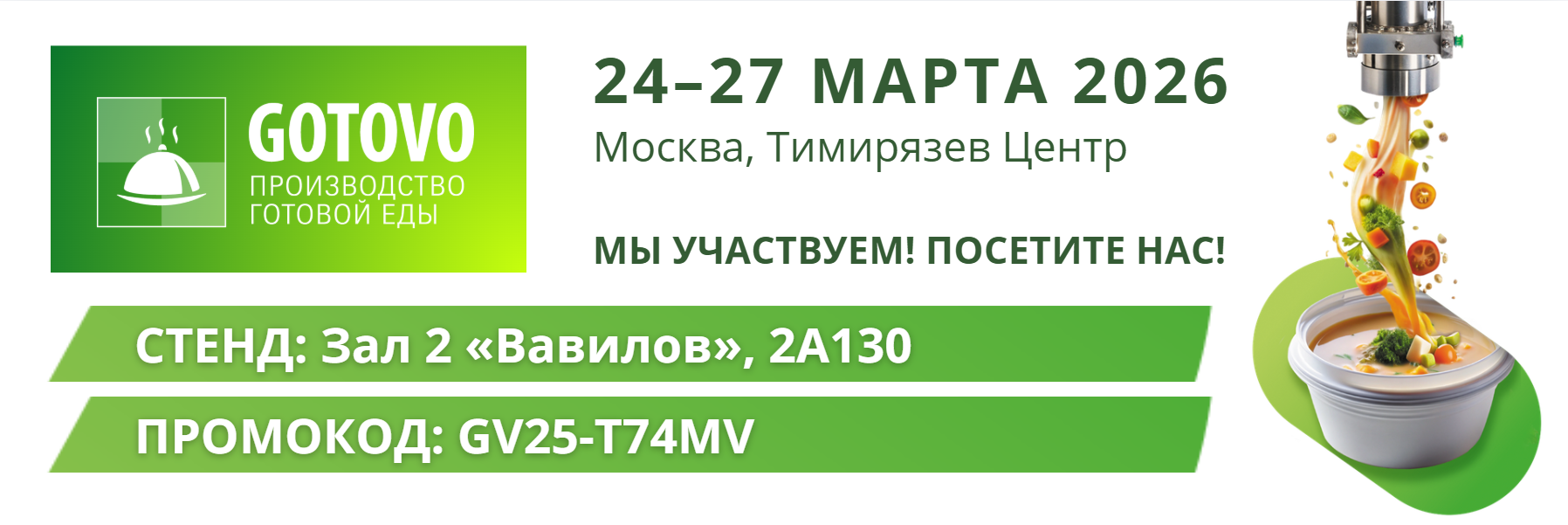 С 24 по 27 марта 2026 года в московском «Тимирязев Центре» пройдет ключевое событие для профессионалов индустрии готовой еды - выставка GOTOVO.