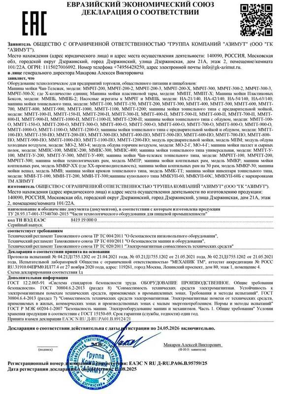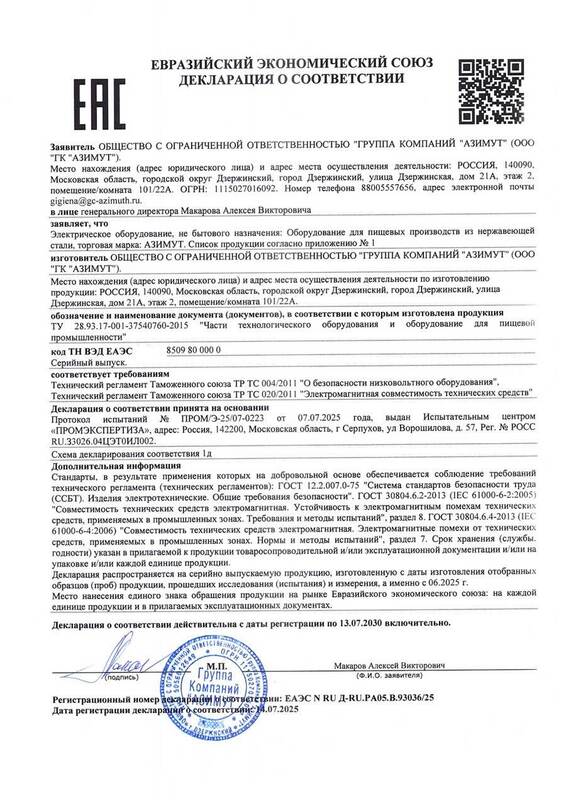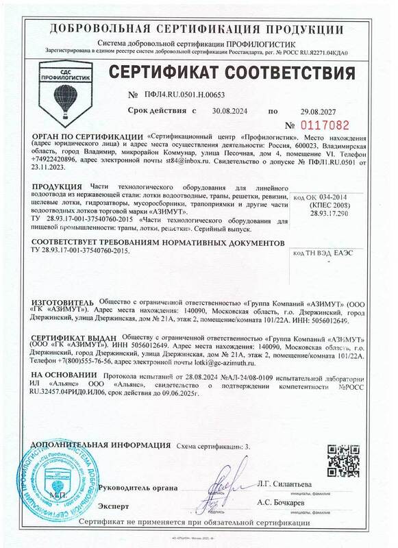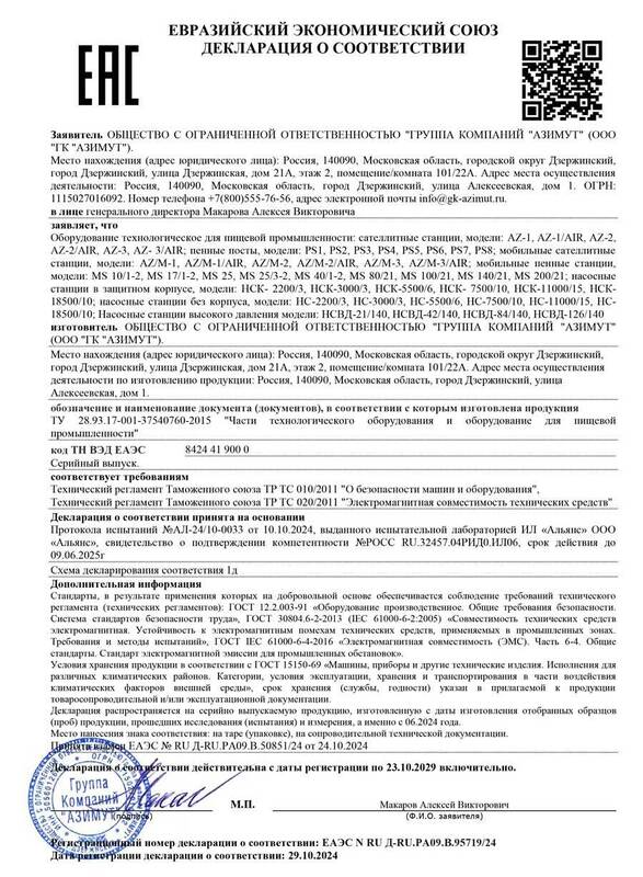Сертификаты и декларации о соответствии оборудования ГК Азимут