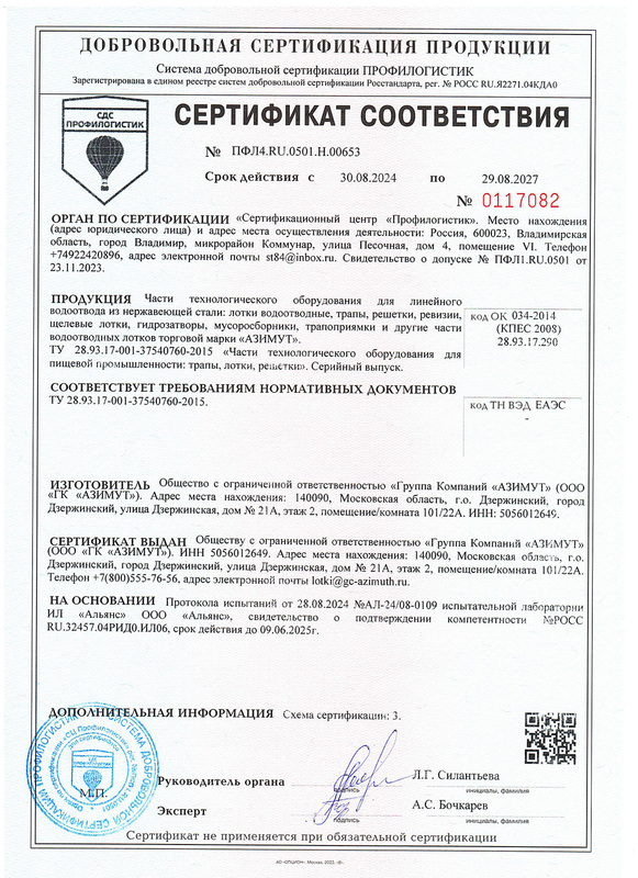 Сертификат по Лоткам, Трапам, Решеткам