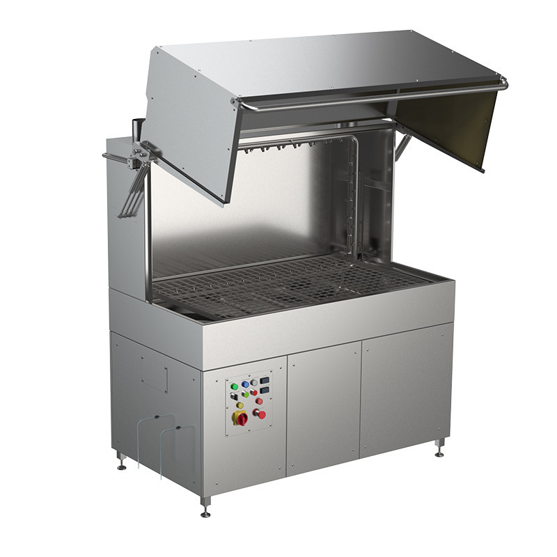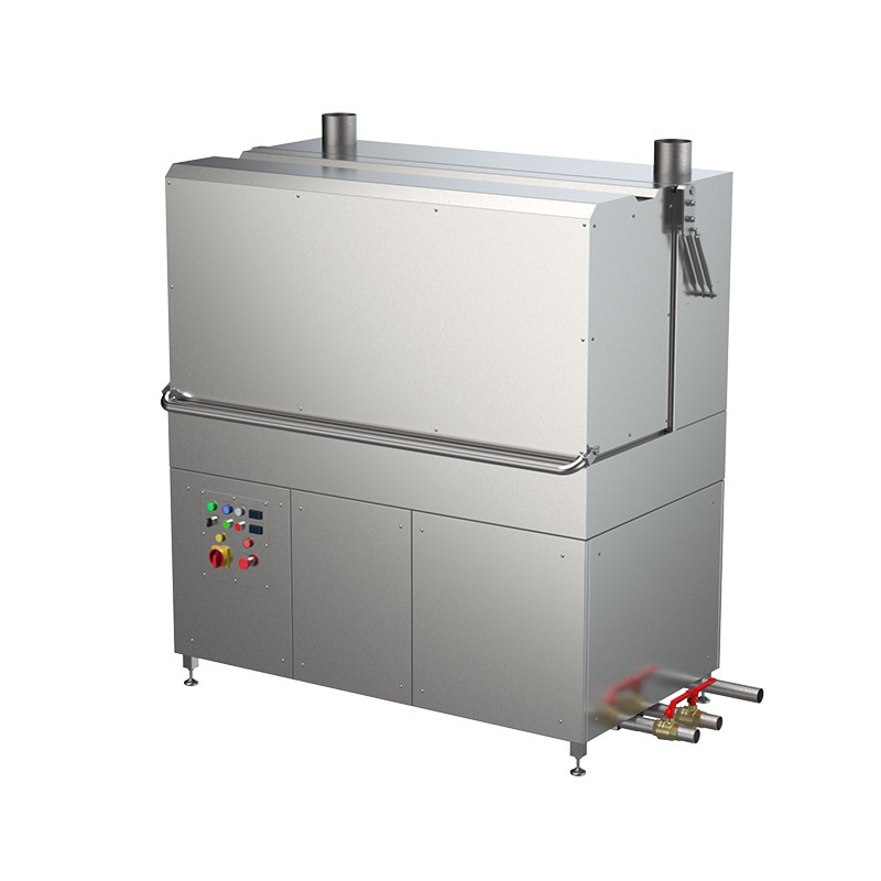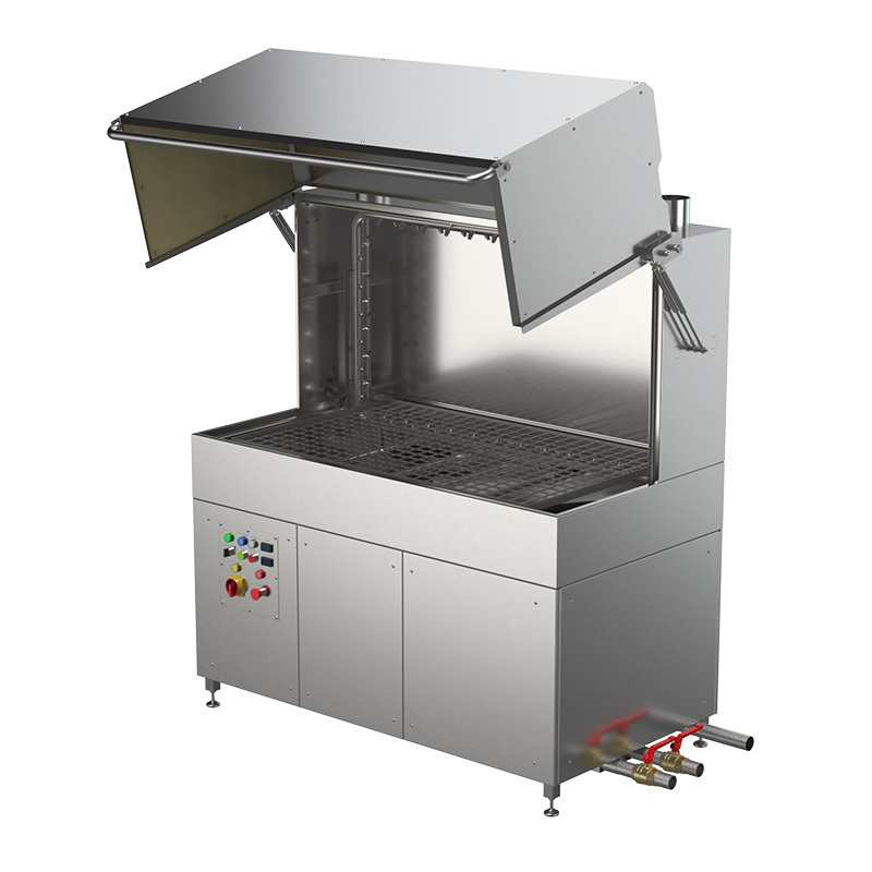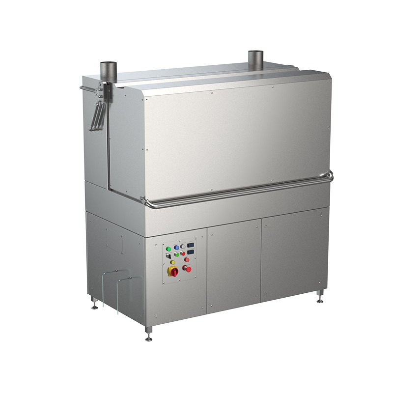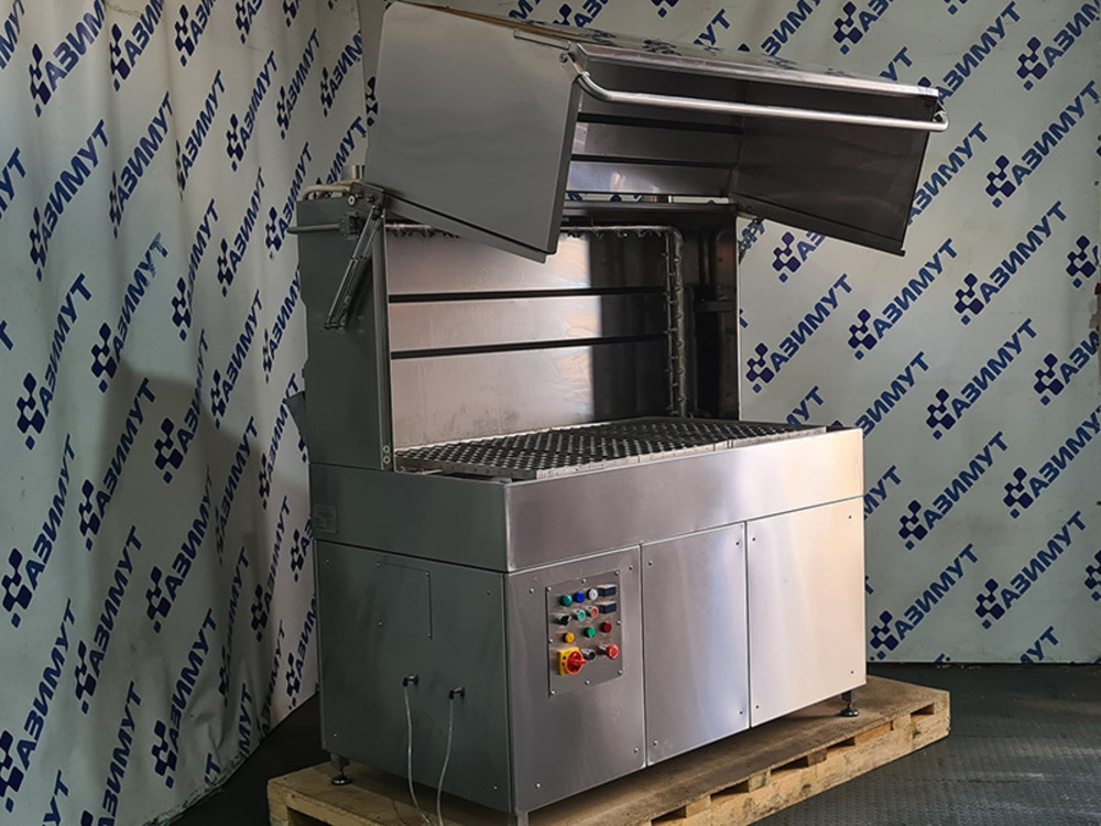 Универсальные моечные машины ММКУП-60 циклические машины для мойки ящиков, ведер, деж для миксеров, форм для тортов, сырных форм, пластиковых бочек, молочных фляг и прочего производственного инвентаря. ММКУП-60 имеют уникальный дизайн купола, который поднимается вверх, полностью открывая доступ в моечную камеру для комфортной и быстрой загрузки/выгрузки предметов мойки, а также для удобного технического обслуживания (промывки фильтра, моечного танка и форсунок). Благодаря дизайну купола в машинах ММКУП-60 они могут загружаться с трех сторон, что делает их максимально удобными для работы в небольших помещениях.