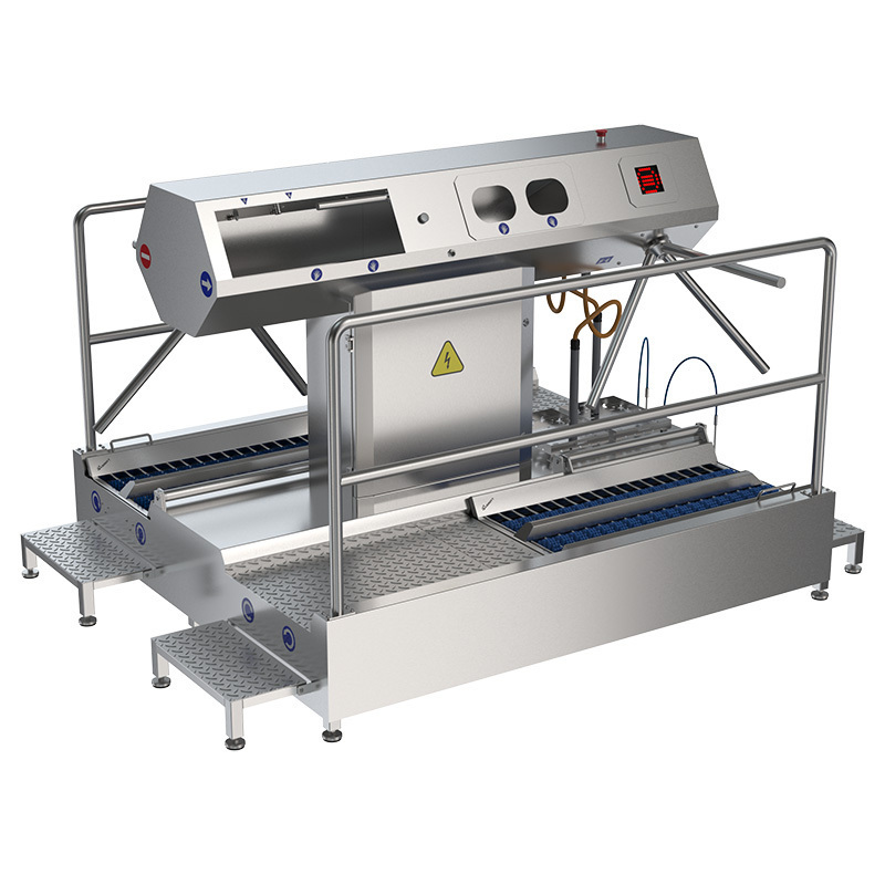 Двусторонний модуль гигиены ДМГ-106С предназначен для мойки с мылом и дезинфекционной обработки кистей рук, автоматической чистки и дезинфекции подошв обуви при входе в чистые помещения на производстве и контроле выхода из чистого помещения на производстве после автоматической чистки и дезинфекции подошв обуви.