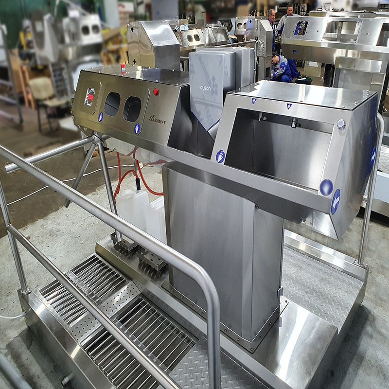 Санпропускник оснащен автоматической сушилкой для рук. На выбор предоставляется несколько вариантов: