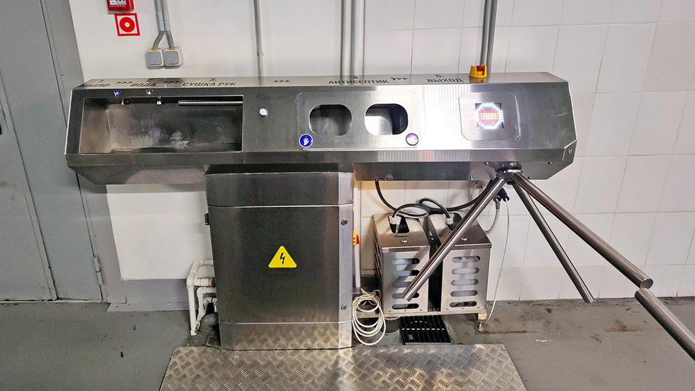 Санпропускник оснащен автоматической сушилкой для рук. На выбор предоставляется несколько вариантов: