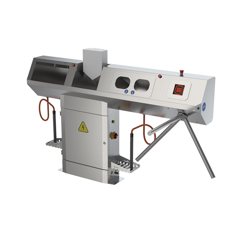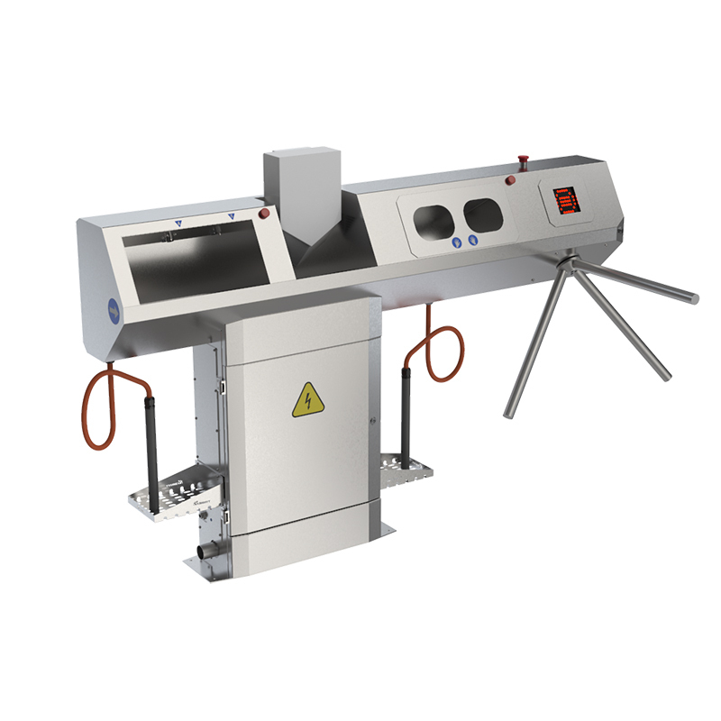 - Использование системы, которая предупреждает об окончании дезинфицирующей жидкости с последующей блокировкой устройства. Наша система не блокирует проход в чистую зону сразу в случае падения уровня дезинфицирующей жидкости, именно так функционирует оборудование, изготовленное нашими конкурентами. Наша же система предупреждает об окончании дезинфицирующей жидкости миганием красной лампы и только после выдачи 10-15 порций жидкости полностью блокирует работу турникета.